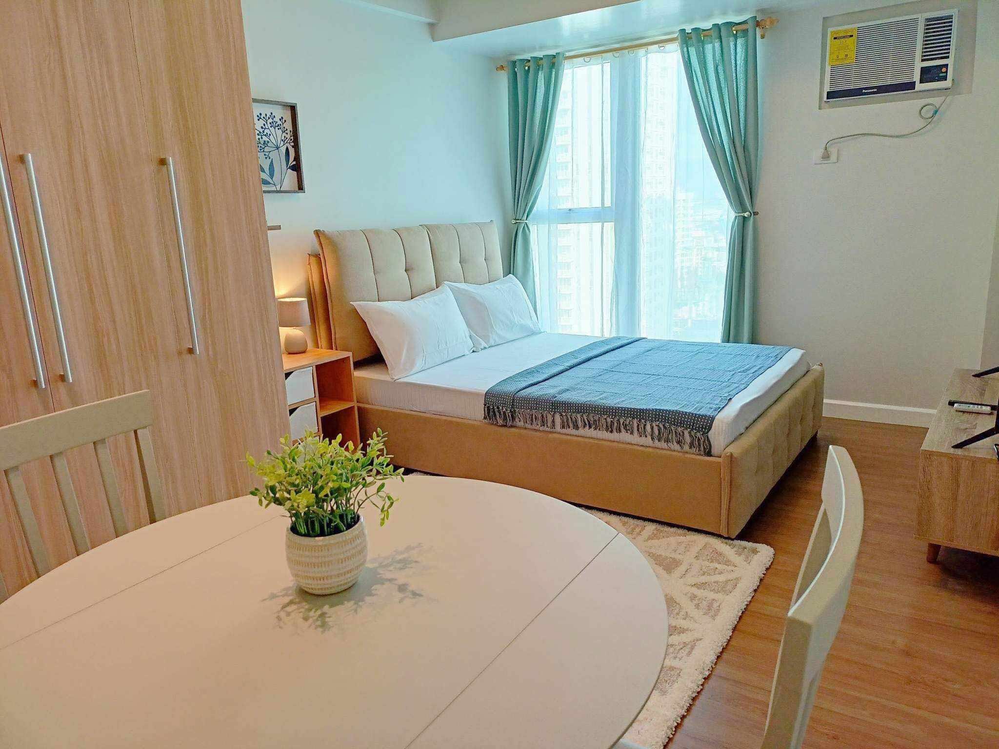 | FURNITURE | Aircon Double size bed Dining table with chairs Refrigerator TV Closets Kitchen cabinets Microwave oven |